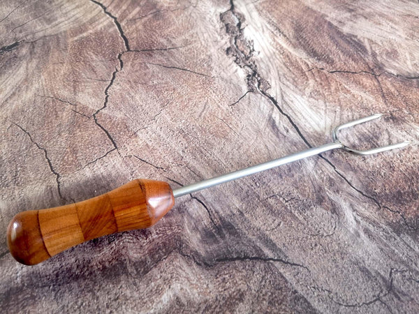 The handle is crafted from elegant Tigerwood, known for its striking grain patterns and deep color. Varnish-treated for protection, the Tigerwood handle not only adds style to your braai setup but also provides a comfortable, slip-free grip. Whether you’re slicing up a hearty steak or serving up a holiday roast, this fork delivers the precision and control you need.