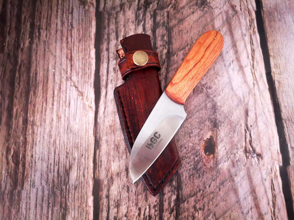 - Portable and Practical: Designed with the outdoors in mind, this knife comes with a handcrafted leather sheath complete with a belt loop for easy, ambidextrous carry. Its compact size makes it a perfect companion for your outdoor adventures or everyday carry.