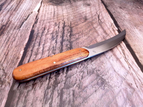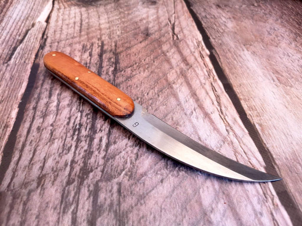 Ergonomic Comfort: The full tang handle is secured with four rivets and crafted from handcrafted Tigerwood, providing a secure and comfortable grip. Whether you’re working for a few minutes or several hours, the Peeling Knife is designed to reduce hand fatigue, making it a pleasure to use.