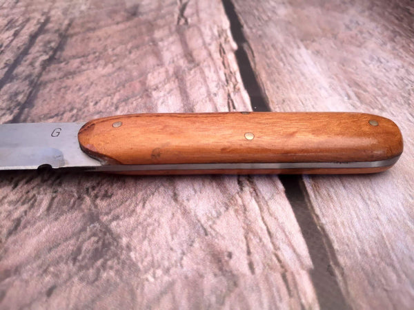 - Handle Material: Handcrafted Tigerwood, secured with four rivets