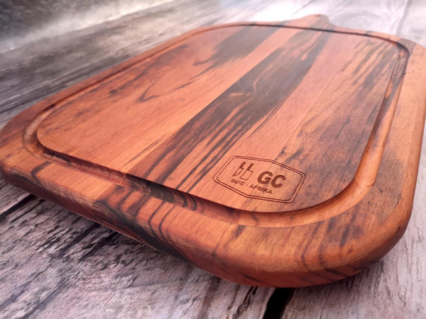 - Premium Tigerwood Construction: Crafted from high-quality Tigerwood and treated with a food-safe oil finish, this cutting board is designed to last through countless braai sessions.
